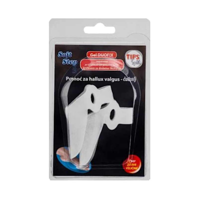Gel DUOFIX pored zaštite za palčanu kost ima i prsten za dodatno fiksiranje. Zbog svojih antialergijskih svojstava prikladan je za dijabetičare i osobe s osjetljivom kožom. Vrlo je elastičan i prilagođava se obliku noge, sprječava pritisak obuće i iritaciju, fiksira palac i time ublažava bol. Stavlja prste u pravilan položaj čime onemogućava pojavu kurjih očiju i žuljeva. Lagan je, siguran za zdravlje i okoliš, ponovno upotrebljiv i može se prati. Pogodan je za sve vrste obuće.