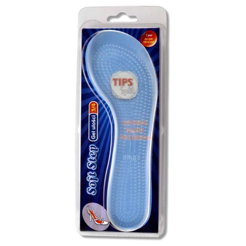 Gel ulošci ¾ pružiti će najosjetljivijim dijelovima vaših stopala udobnost i dodatnu zaštitu. Mekani gel absorbira udarce i umanjuje bol. Prozirni su, lagani i vrlo tanki tako da odgovaraju svim vrstama obuće, a posebno obući sa visokim potpeticama. Mogu se prati i ponovno koristiti.